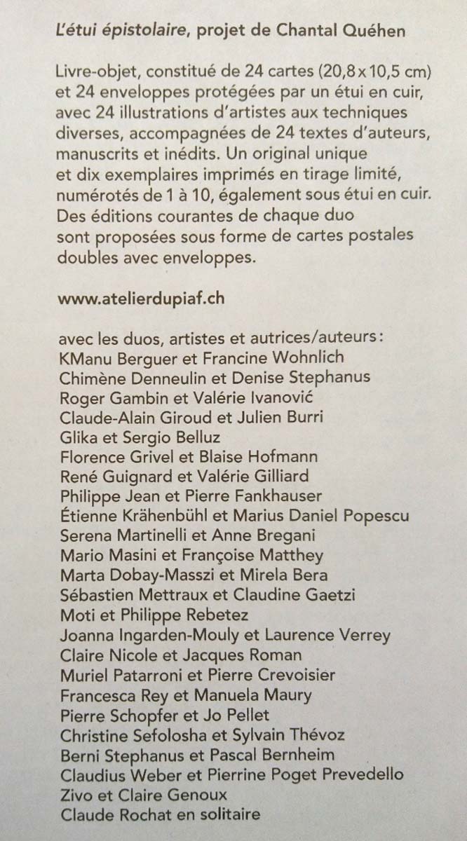 Duos du projet artistique "L'étui épistolaire" de Chantal Quéhen