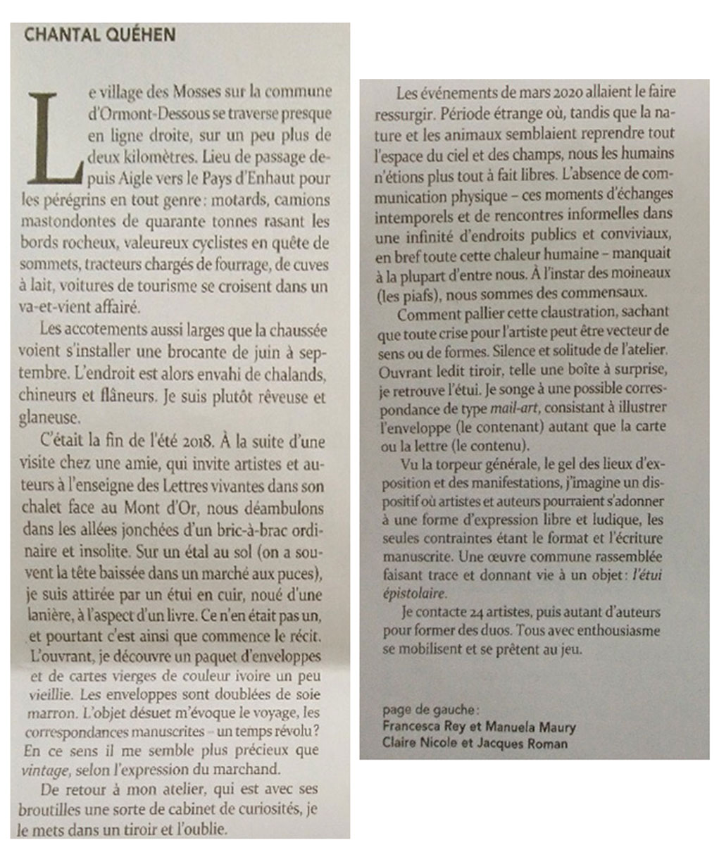 Projet artistique de "L'étui épistolaire" Chantal Quéhen