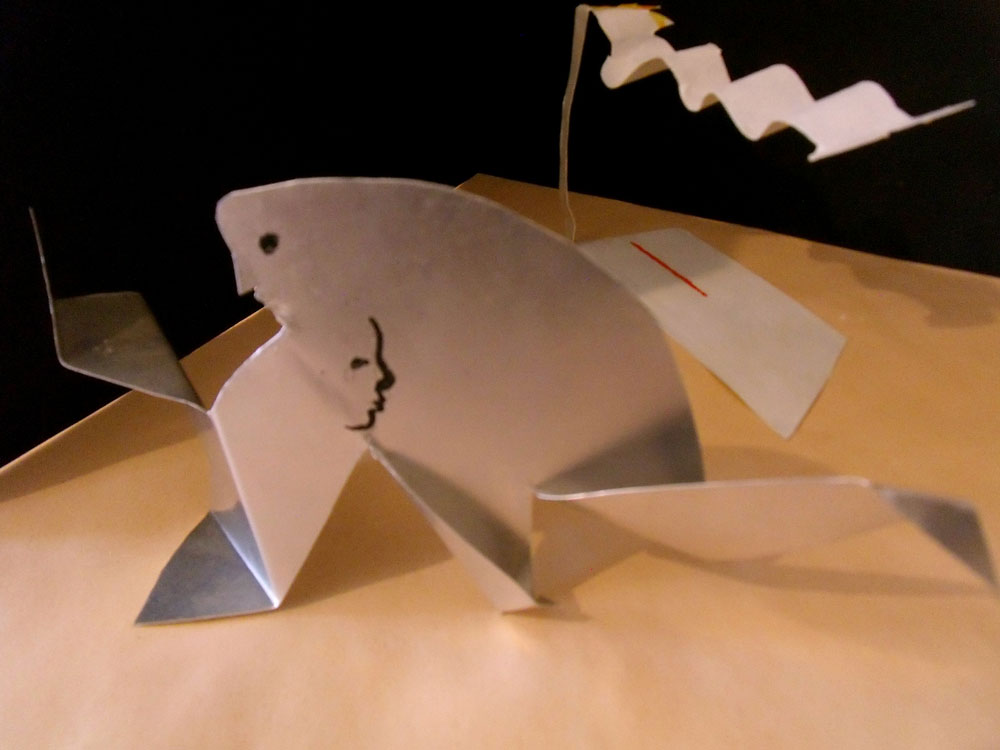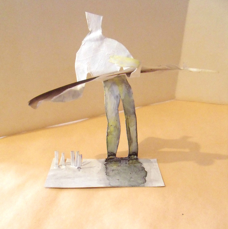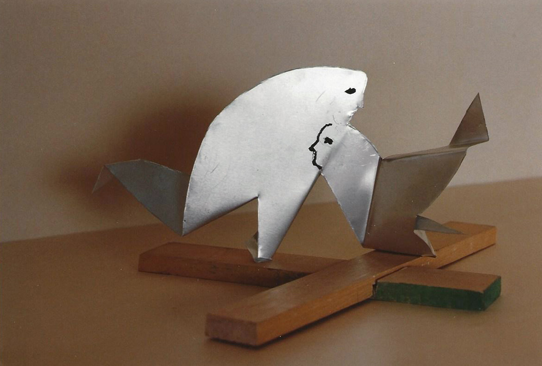 A la suite de la difficulté d’exposer, je pense à une petite installation pouvant se déplier à partir d’une petite valise (voir Marcel Duchamp). 1990 Valise 30 x 20 x 10 cm. Malheureusement les sculptures ont disparu avec la petite valise introuvable…